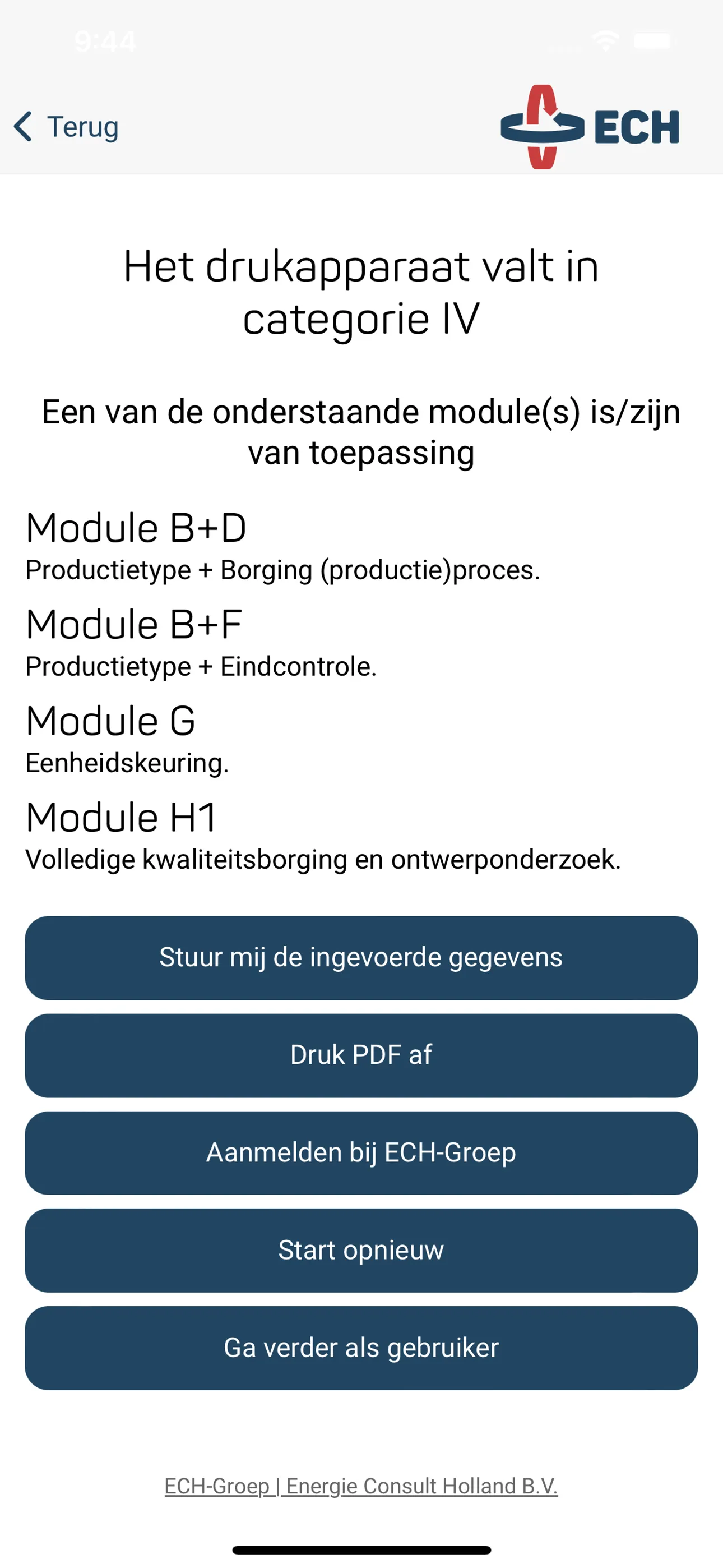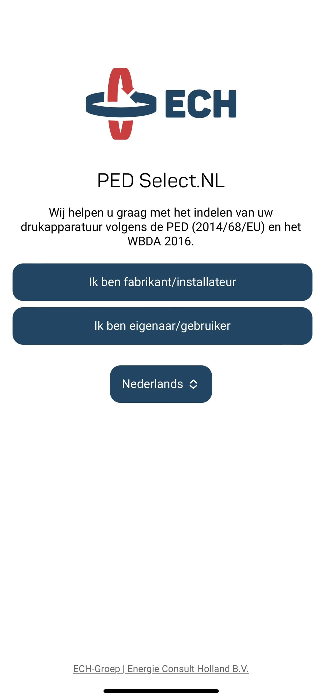 In 2016 hebben wij voor onze klant Energie Consult Holland (ECH) de PED select.NL app ontwikkeld. Deze applicatie ondersteunt fabrikanten en gebruikers van drukapparatuur bij het bepalen van de specifieke eisen waaraan hun apparatuur moet voldoen. De app onderscheidt zich door de uitgebreide database van regelgeving en uitzonderingen die in acht worden genomen. Het resultaat dat de app levert, is geen schatting maar een accurate weergave van de vereisten, zelfs in de meest complexe situaties. Het resultaat is te downloaden als PDF-document.